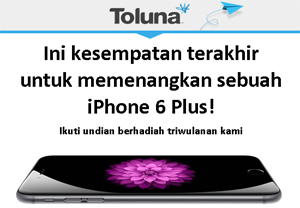 Setelah sebelumnya saya telah memposting sebuah artikel yang berjudul Kerja Sampingan Mudah dan Tanpa Modal di tahun 2014 di kesempatan kali ini saya akan berbagi lagi informasi yang masih berhubungan dengan artikel tersebut. Dengan bergabung di Toluna, kita berkesempatan memenangkan sebuah iPhone 6 Plus 16GB Baru! menarik bukan? Hadiah undian ini akan di buka sampai tanggal 1 desember 2014.