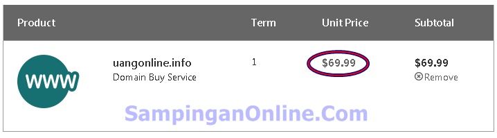Betul-betul harga yang sangat wow untuk nama domain UangOnline.Info yang tadinya hanya seharga $ 3.17. Karena hal inilah saya akhirnya membeli nama domain baru untuk blog ini.