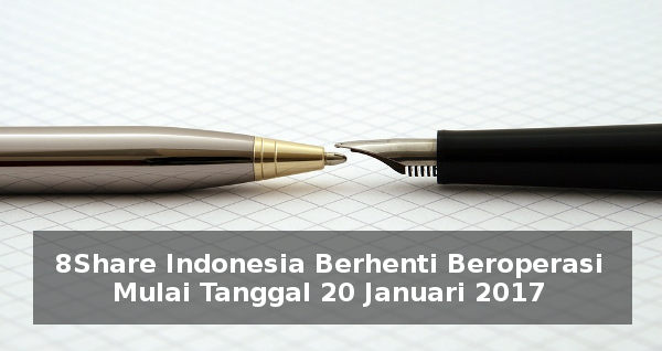 8Share Indonesia akan menghentikan segala operasinya setelah 20 Januari 2017. Setelah tanggal tersebut tidak akan ada lagi aktivitas di website/platform 8Share, termasuk Specials baru dan pentransferan imbalan.
