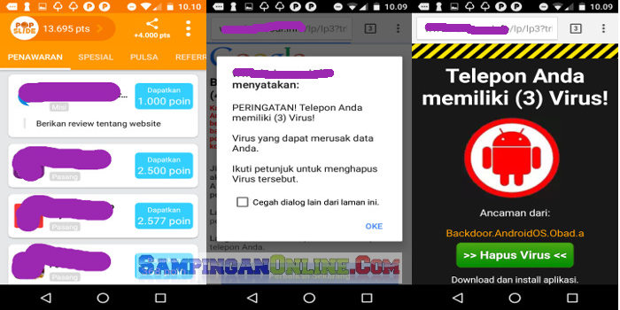 Tapi ternyata, ketika menjalankan misi tersebut, yang tertuju bukanlah link yang mengarah ke direktori aplikasi yang ada di Google Play Store langsung, akan tetapi dialihkan dulu ke landing page sebuah mobile site yang biasa ada di jenis iklan online pop under dan pop seperti jaringan iklan propellerads, mobicow, dan lain-lain.