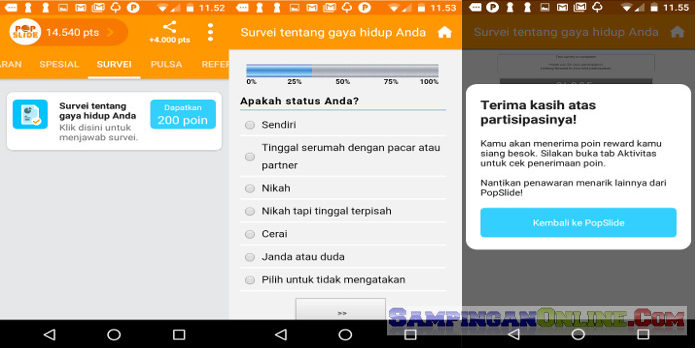 Terlebih untuk saat ini, PopSlide membuat terobosan dengan menambahkan program survey yang akan memberikan poin kepada user yang bersedia untuk mengikutinya.