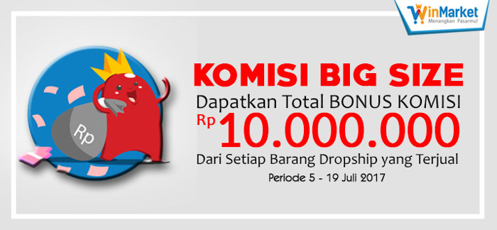 Terlebih lagi, khusus untuk program "Komisi Big Size"ini, WinMarket akan memberikan DOUBLE BONUS sekaligus kepada semua dropshippernya, yakni berupa komisi penjualan barang dropship yang ditambah dengan BONUS KOMISI langsung senilai Rp10.000 dari setiap produk dropship yang terjual.