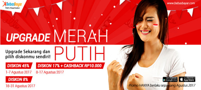 Jika hingga saat ini status member BebasBayar aktif anda masih personal, saat ini anda bisa meningkatkannya ke level premium dengan cara upgrade. Dan mengapa kami menyarankan agar anda melakukan upgrade premium BebasBayar sekarang..? karena mumpung saat ini sedang ada "Promo Upgrade Merah Putih" yang memberikan diskon biaya upgrade hingga sebesar 45%. Baca juga: beli pulsa online BebasBayar dan hadiah smartphone transaksi BebasBayar.