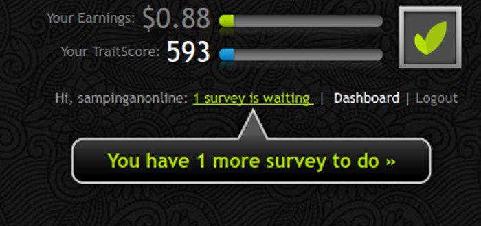 Dibagian Earning, akan terlihat berapa jumlah pendapatan kita hasil dari survey yang sudah selesai kita lakukan. Dan bahkan semua riwayat ada di menu Full Earnings History.