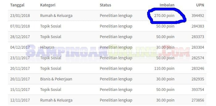 Berikut rincian dari riwayat survey yang sudah kami ikuti dari beberapa bulan terakhir hingga mendapatkan 670 poin :