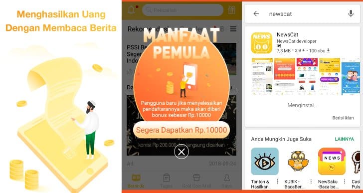 Yuk sekarang kita coba download dan install aplikasi NewsCat ini untuk mendapatkan penghasilan lebih banyak sebagai tambahan dari aplikasi Berita Menarik yang mempunyai batas maksimal pendapatan harian!