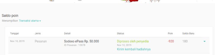 Caranya mudah banget, pertama pastikan jumlah minimal penukaran poin kamu sudah memenuhi syarat baik untuk Sodexo voucher nominal Rp. 25.000 maupun yang Rp. 50.000. Dan hal tersebut bisa kamu cek pada akun kamu setelah kamu dalam kondisi log in.